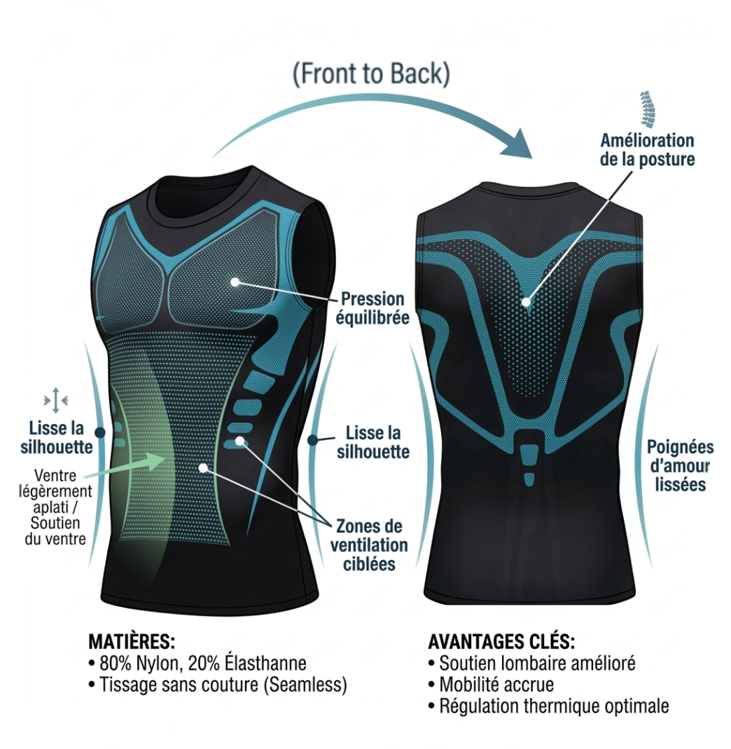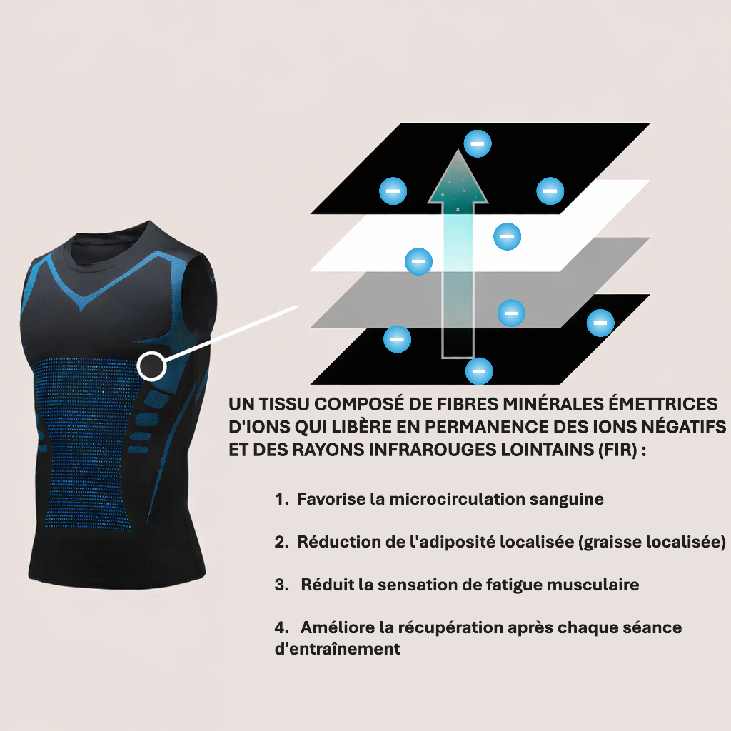 Grâce à la compression active et aux fibres ioniques, ce débardeur améliore la circulation, réduit la fatigue musculaire, et affine votre posture au fil du temps.